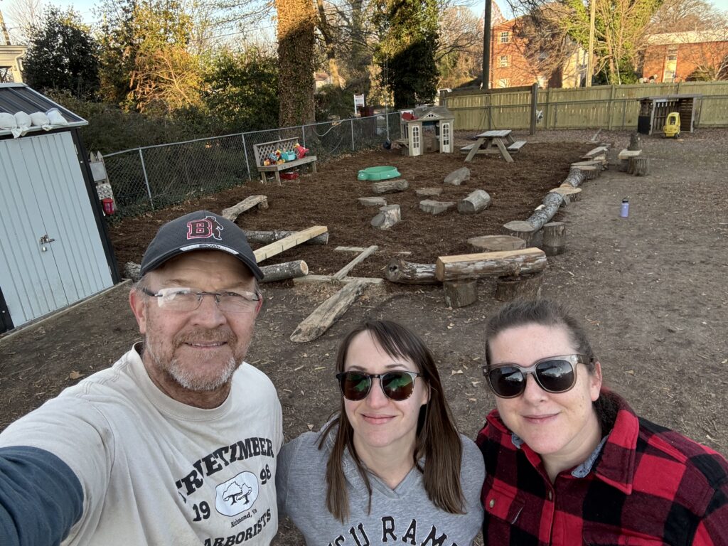 It was such a pleasure to work with Caitlyn and Nina of the Cottage School at Ginter Park Presbyterian church to bring good old-fashioned play stuff to the preschool playground. Its always great to see that when given options, our small ones will usually gravitate towards items from their natural world to play on and play with!